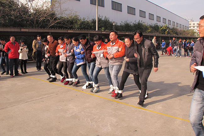Subsequently, the intense competition started officially. This sports meeting divided all the staffs into 5 teams : Purchasing & production Team, Assembling Team,Metaling Team, QC&Finance&HR Team, Sales Team, there were 3 sport games : “Ten people with eleven foot "," dress relay "and " clip the ball ", each game there were 3 rankings.Eventually, after a fierce competition, we have had the top three in each game: