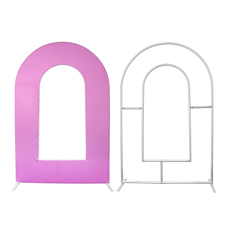 Arched display stands are suitable for weddings, birthday parties, event displays, combining beautiful, durable, lightweight, reusable and other features. The frame body is made of high strength non-fading tension fabric, aluminum round tube, set up and assembled in 5 minutes.