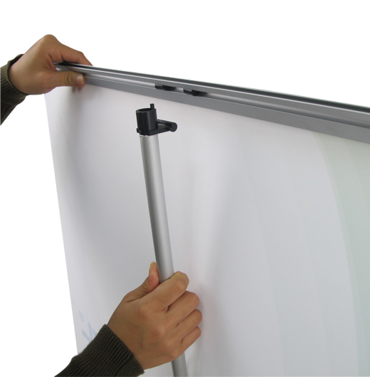 This single sided type L banner display is used as advertising screen in different shows.This L banner display is made of aluminum.Everyone can set up it without instruction. And difference sizes of printing can be attached in frames. After being folded, it can be put into a handbag for convenient transportation.
