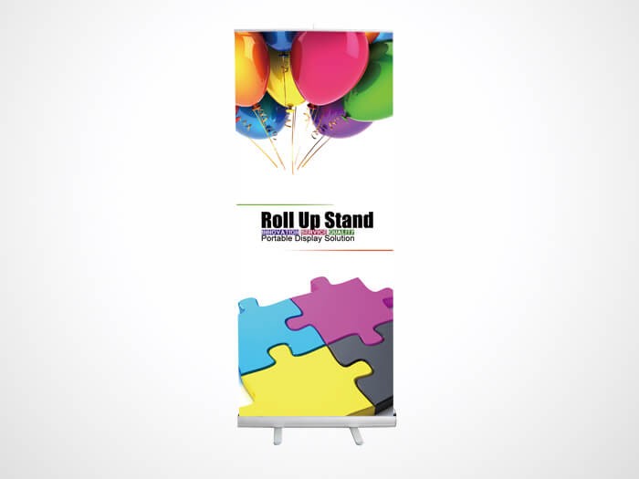 The roll up stand is pulled out and retracted from the aluminum bracket or base for maximum portability. This feature makes these banners a signage solution for trade shows, events and conferences.
