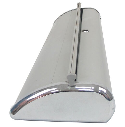 The roll up stand is pulled out and retracted from the aluminum bracket or base for maximum portability. This feature makes these banners a signage solution for trade shows, events and conferences.