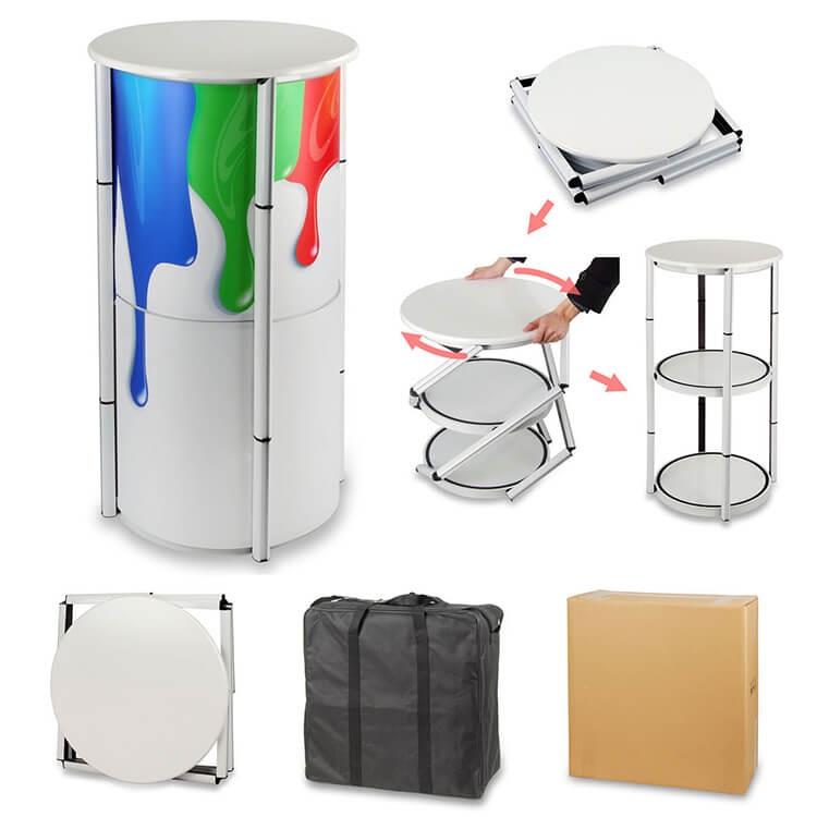 3. With table top can display computer, mobile phone, gift, cosmetics, and jewelry or used as a reception counter. Excellent for trade show displays.