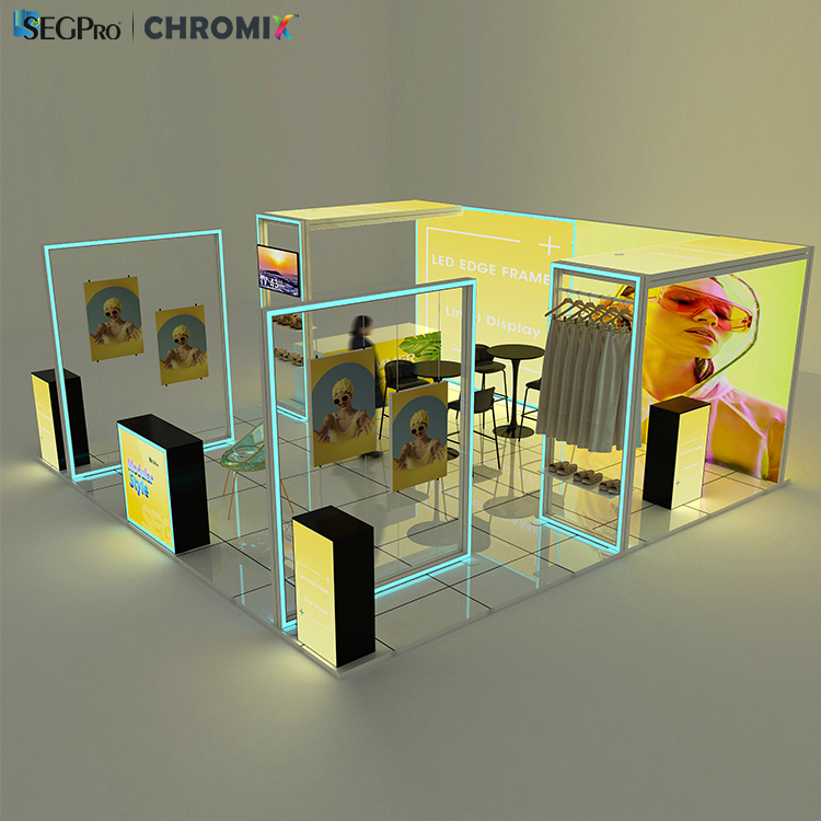 من خلال توصيل إطارات LED الطرفية القائمة بذاتها بزوايا محددة، يحصل العارضون علىحرية التصميم دون المساس بالسلامة الهيكلية.