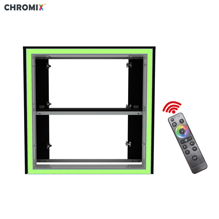 يُضفي الإطار الخارجي المُضاء بتقنية RGB LED مظهرًا بصريًا قويًا يجذب الأنظار فورًا في قاعة العرض. وباستخدام جهاز التحكم عن بُعد المُرفق، يُمكن للمستخدمين تغيير ألوان الإضاءة وأنماطها لتناسب بيئات العرض المختلفة وهويات العلامات التجارية.