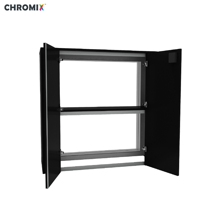 يتوافق هذا المنضد تمامًا مع نظام كشك segpro® chromix™، ويتكامل بسلاسة مع تصميمات المعارض الكاملة ويعمل جنبًا إلى جنب مع صناديق الإضاءة والإطارات ومكونات العرض المعيارية الأخرى.