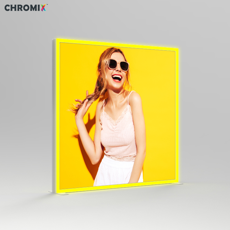 بالاعتماد على إطار الإضاءة ذي الوجهين، تُحقق إضافة شرائط الإضاءة والرسومات ذات الوجهين تأثير إضاءة إطار الإضاءة ذي الوجهين وصندوق الإضاءة ذي الوجهين، مما يخلق تأثير خلفية مذهلاً. ويُحقق ذلك تأثيرًا مضاعفًا. تشمل خيارات الرسومات رسومات شبكية وأقمشة مشدودة.